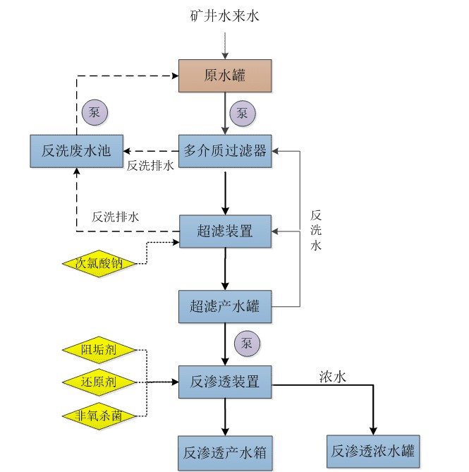 神木市能源發展有限公司電化分公司噴淋冷卻水處理項目,為噴淋冷卻水生產用水改造項目,新建1套產水量為50m3/h的RO裝置。本改造項目實施后,將全部使用經過處理后的礦井水,其中新建的RO系統產生的濃水將排入濃水罐中,定期送至其他裝置處理。